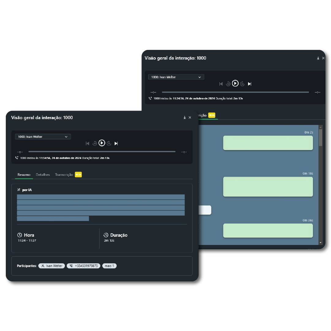 Mergulhe na jornada de cada chamada, do início ao fim. Cada conversa telefônica é capturada em painéis personalizáveis e intuitivos, permitindo que sua empresa identifique e atue proativamente sobre os pontos fracos dos clientes, guiando a tomada de decisões comerciais estratégicas.
