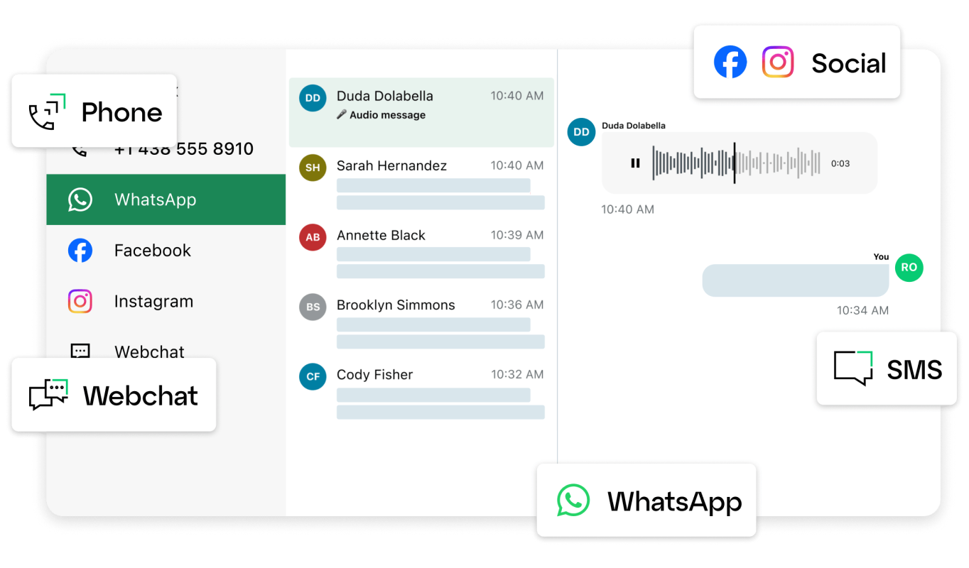 Para atender às expectativas dos clientes, é preciso responder na hora e pelo meio mais conveniente para eles, mesmo que a conversa tenha começado por outro canal. Com o GoTo Connect, você se comunica com os clientes por telefone, e-mail, chat, redes sociais, webchat, WhatsApp e mais, criando interações mais pessoais e genuínas.