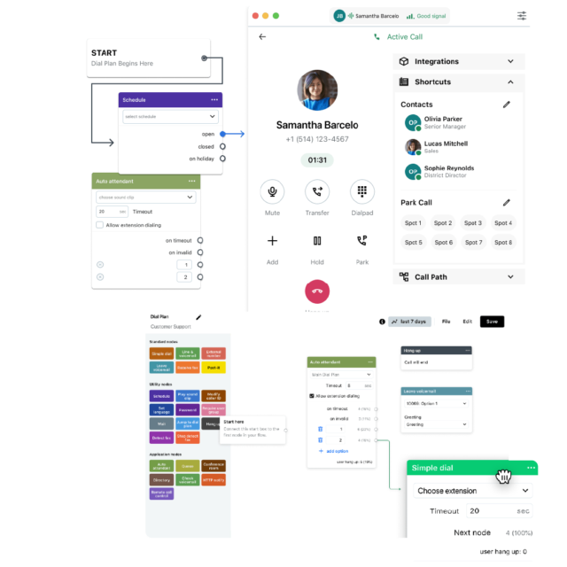 Simplificados Com um editor visual de transferência inteligente das chamadas com baixo esforço, arrastando e soltando, permitindo a gestão de fluxos de chamadas em segundos.